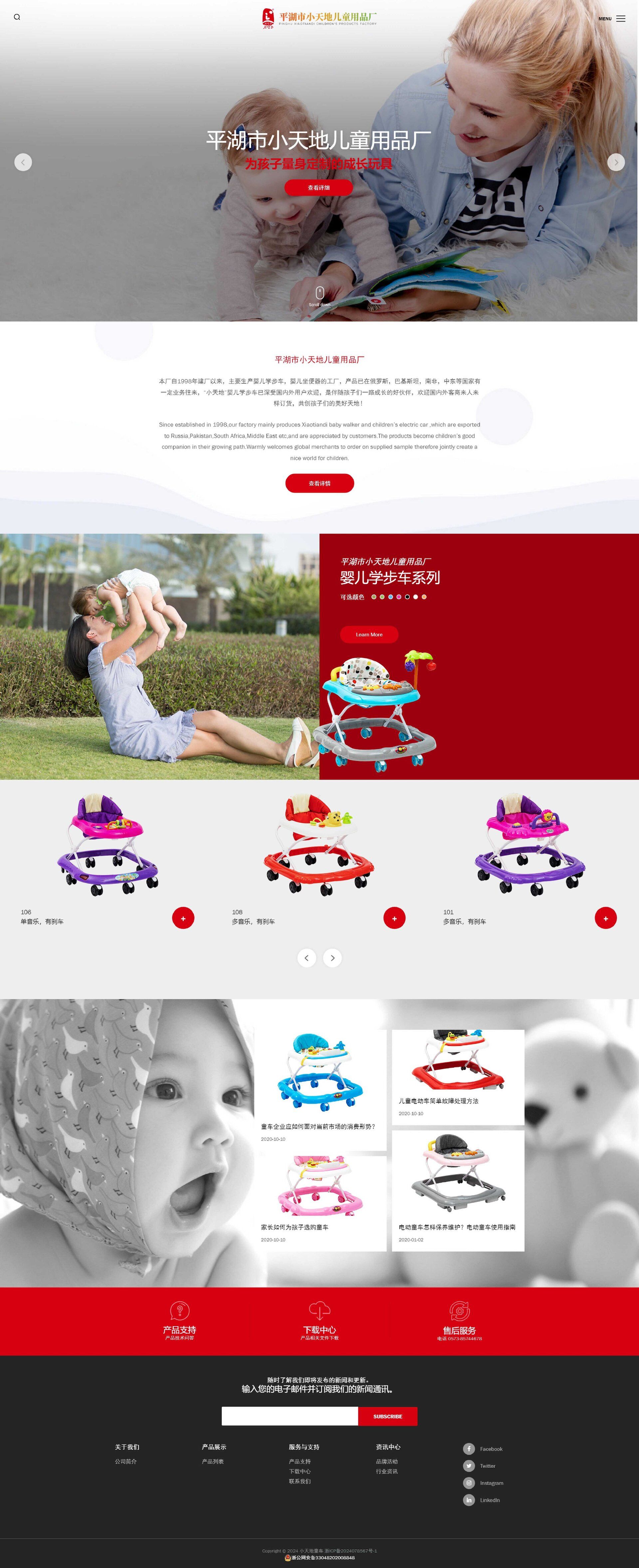 本廠自1998年建廠以來,主要生產嬰兒學步車,嬰兒坐便器的工廠,產品已在俄羅斯,巴基斯坦,南非,中東等國家有一定業務往來,“小天地”嬰兒學步車已深受國內外用戶歡迎,是伴隨孩子們一路成長的好伙伴,歡迎國內外客商來人來樣訂貨,共創孩子們的美好天地!